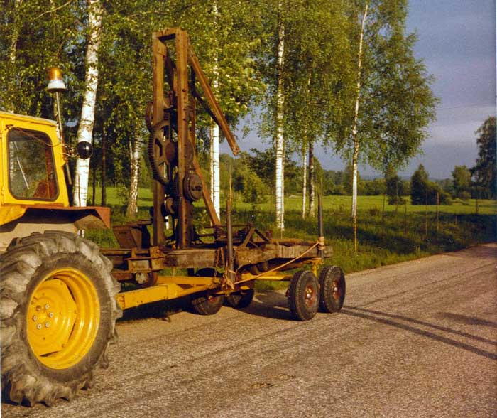 Så långt gick det bra, men när ekipaget skulle köras upp på land blev vi snabbt varse att den tvåhjulsdrivna traktorn slirade ner sig i den lösa makadammen. Denna gång fick vi be en annan traktorägare om hjälp, och med två traktorer i tandemkoppling kom vi upp så småningom. Detta var ett av de första tillfällen då vi började önsketänka; ”– tänk om vi ändå hade haft en fyrhjulsdriven traktor”!