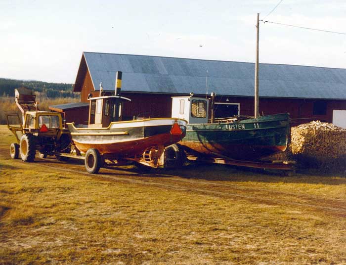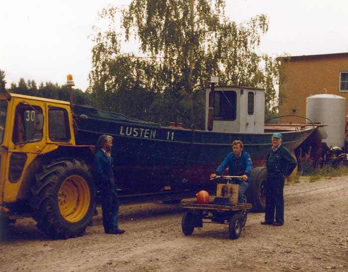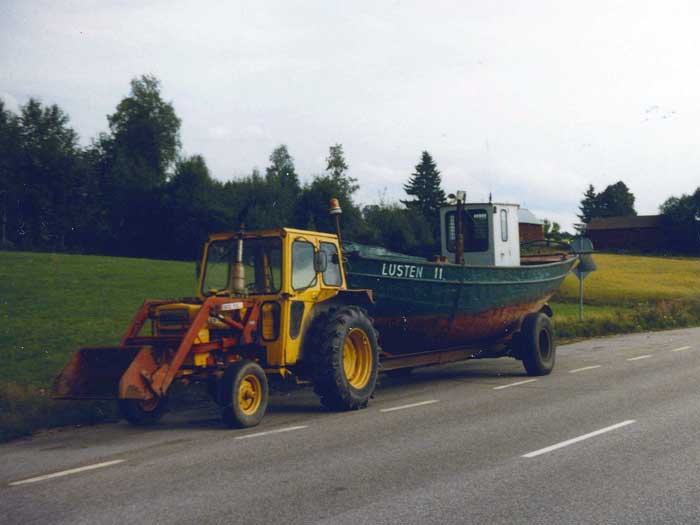 I september 1986 fick BM-Volvo-traktorn bekänna färg när vi fraktade hem en nyförvärvad och betydligt större bogserbåt än vår tidigare båt, Skôrpa. Den ”nya” båten, Lusten 11 hämtades vid Klarälvens Flottningsförenings huvudverkstad i Dyvelsten, Forshaga. Väganslutningen från verkstadsplanen utgörs av en brant grusväg upp mot riksvägen, strax söder om Forshaga. Att komma upp i branta backen, var verkligen en prövning. Vi försökte först att köra upp på ”hög-tvåan”, men då orkade traktorn bara halvvägs. Sedan försökte vi igen, nu på ”hög-ettan”, och den här gången kom vi upp, fastän drivhjulen ”halvspann” i gruset.