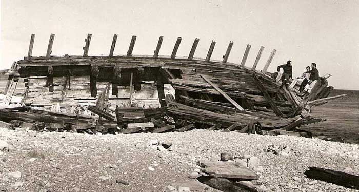 Skrovet påstås ha varit ganska intakt tills den svåra vinterstormen 1954 gav vraket en massa stryk - foto 1966