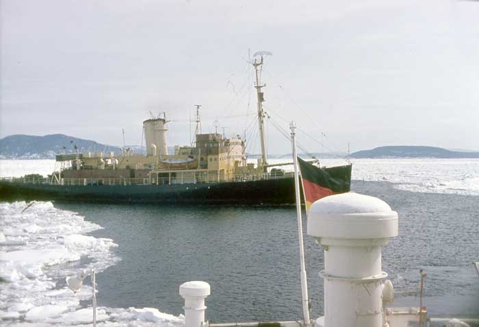 YMER främst och närmast THULE assisterar M/V CORNELIA, 1968