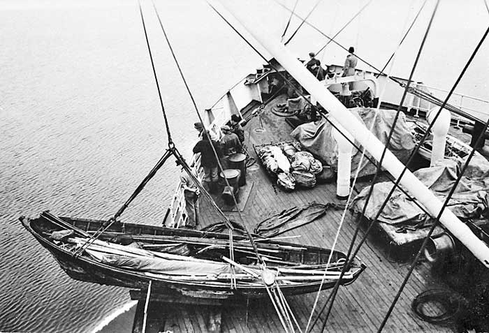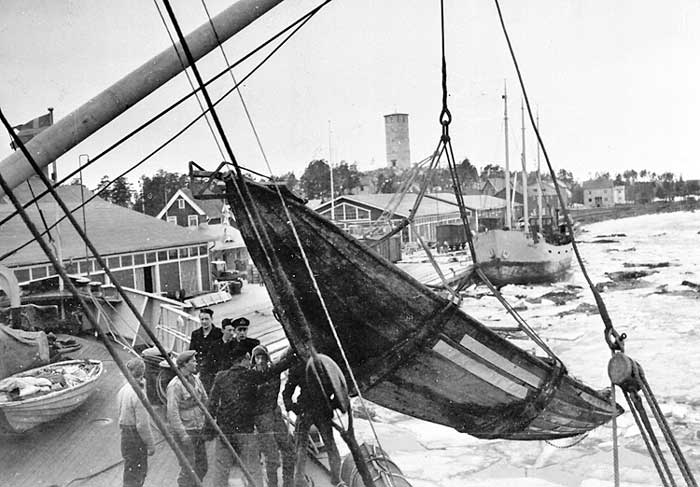 Ett säljaktlag, troligen från Österbotten, bärgade av YMER i Bottenviken utanför Piteå, sannolikt vårvintern 1950