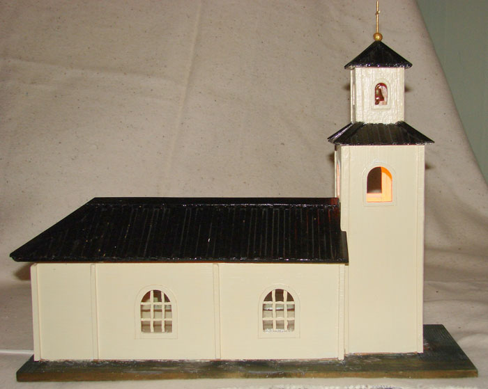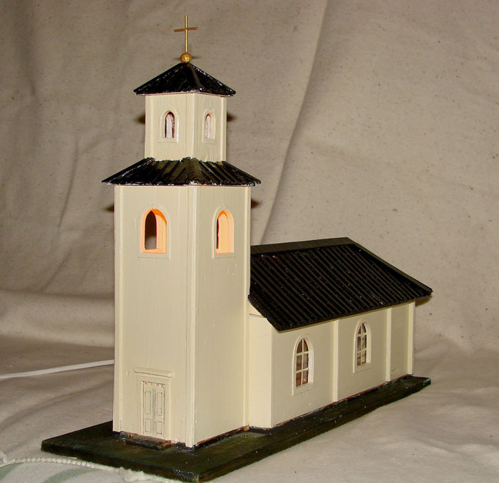 Modell av Ytterstfors Brukskyrka i sitt tidiga utförande gjord av Lennart Hedlund