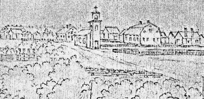 Teckning av kyrkan från ca. 1840