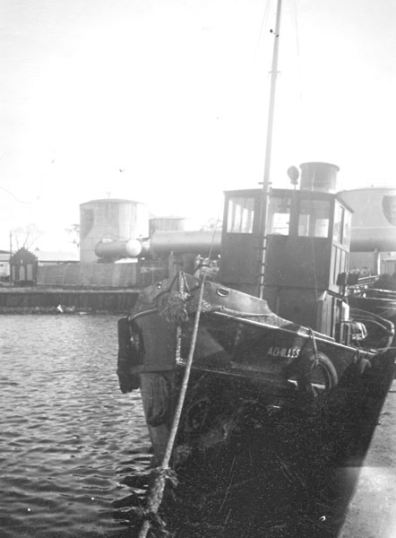 Byggdes för Amsterdam Tug & Salvage Co, Amsterdam som ACHILLES. Inköptes till Sverige, via C.E. Jur Muhlen A.J. de Graf, Amsterdam, den 24 nov 1916 till AB Stegeholms Snickerifabrik, Västervik för 63.000 kr. Resan till Göteborg ombesörjdes av L Smith & Co Int. Sleepdienst. Näste ägare blev i sept. 1917 Stockholms Ved AB, Stockholm och då var priset uppe i 215 000 kr, men den 30 nov 1918 såldes hon till Ostkustens Transport AB, Norrtälje. Dessa trädde i likvidation 1921, men ändå behöll båten till den 18 aug 1922 då Blekinge Kustartilleriförsvar, Karlskrona köpte den. Där fanns hon sedan ända till början av 1953 då Johan A. Sture, Helsingborg lyckades köpa henne för blott 12 100 kr. Sjönk i Malmö hamn under bogsering av pråmen C.G. II på hösten 1953 innan hon vidarebefordrades den 3 jan 1954 till AB Kolkompaniet /J.A. Sture/, Malmö. Då kostade hon bara hälften, eller 6 000 kr. Den sista anhalten blev Carl Persson & Söner, Ystad som köpte den 27 sept 1956 för 10 000, och de meddelade den 2 okt 1956 att skrotningen påbörjats, men att skrovet skulle behållas en tid för att tjänstgöra som uppsamlingsplats för skrot. Definitivt skrotad 1959.