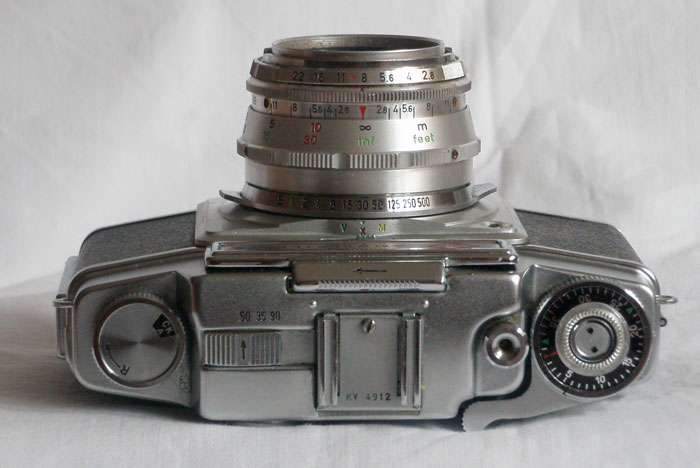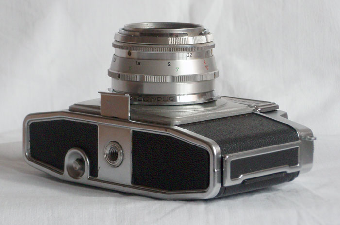 Mätsökarkamera där en lucka fäldes upp så man kan se genom sökaren. Vilken härlig tyngd i kameran, den känns gedigen.