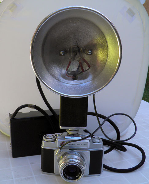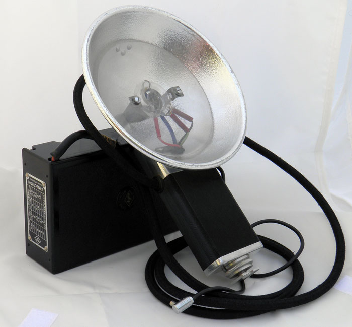 Tillverkades 1953. 6 x 30v batterier. Blixtrör. Ledtal 20.