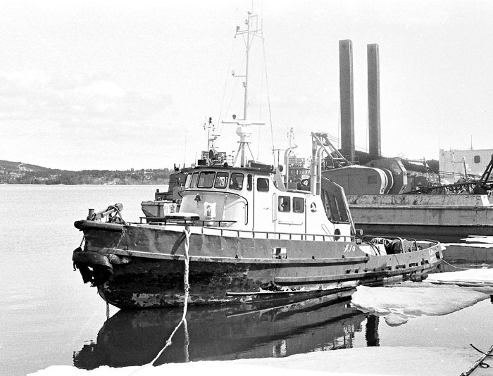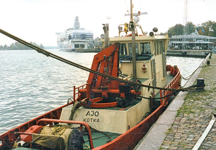 Kaarlo Nikkola ja Kump., Kotka som AJO. Kantrade och sjönk i Walkoms hamn den 15 sept 1978 under ass. av ms IAMATIKOS. Bärgades och sattes i stånd i Kotka. Såldes ca 1981 till Pentti Montonen, Joensuu och ägdes i vart fall 1994 av Pekka Rytkölä, Kotka vilken 1994 ändrade firma till Ajohinaus Pekka Rytkölä Ky.