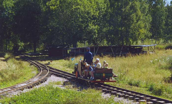 Det brantaste partiet på hela banan har just passerats backgående. I bakgrunden ligger bogserbåtarna Björnidet och Billerud upplagda.