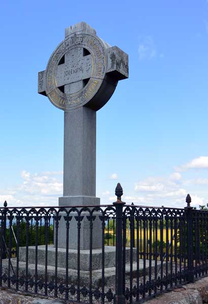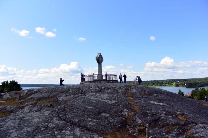 Ansgarsmonumentet högt uppe på Björkös norra sida restes 1934 till 1000-årsminnet av hans första besök i Birka.