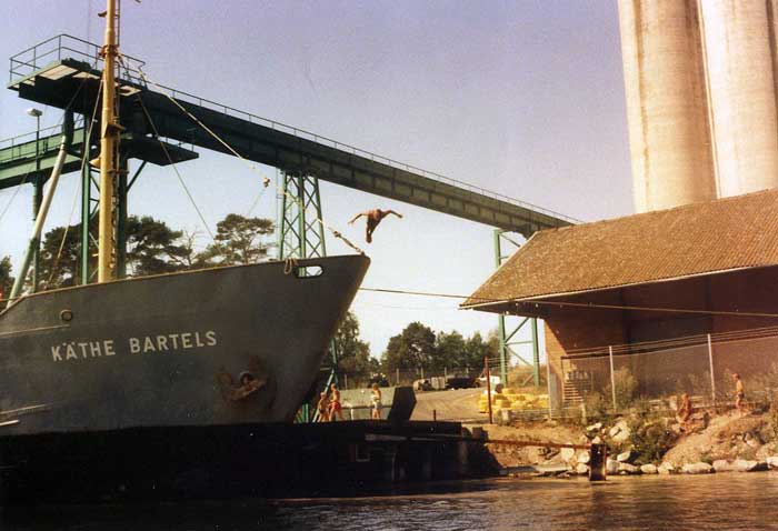 I Bålsta hamn ligger KÄTHE BARTELS och lastar spannmål - 1982