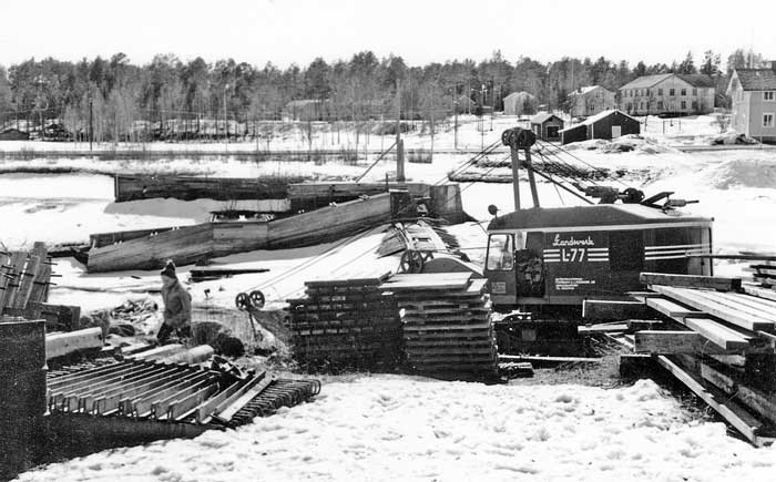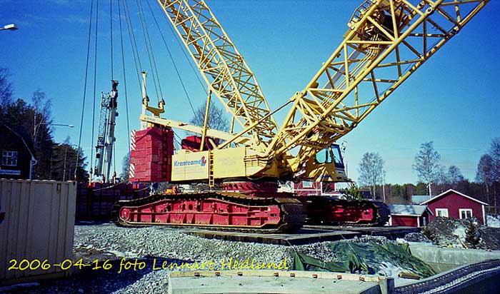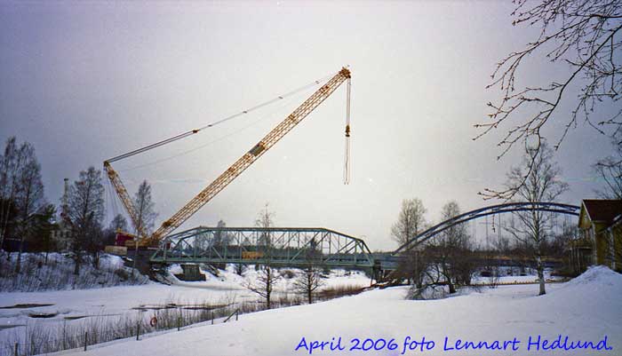 Ny bro över älven i Byske lyfts på plats en dimmig dag - 20 april 2006