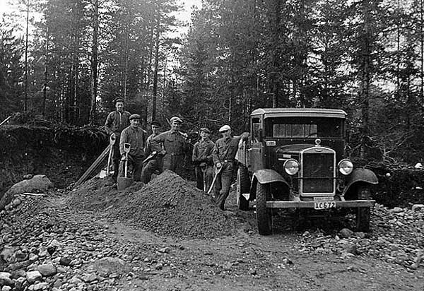Ford i Ingvar Lundqvist Åkeri i Östanbäck. Skall lasta grus, för hand.