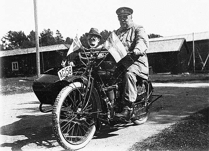 Buss på linjen Skellefteå - Byske - Renholmen med chaufför Erik Källström - 1920-talet.