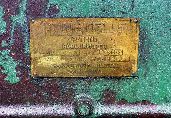 Motorn var en 2-cyl. tvåtakts tändkulemotor för på 32 hk. vid 900 v/min. 4 växlar framåt (max 14 km/t) och en växel bakåt (max 2,5 km/t)