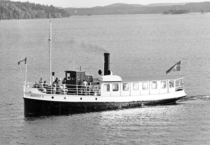 Byggdes för AB Boxholms Bruk, Boxholm som bogserbåten BOXHOLM II. Blev passagerarbåt 1966, ägd av okända, men köptes 1982 av Rune Hektor, Boxholm och Sven Olov Sjöberg, Rödjenäs, och dessa bildade detta året Handelsbolaget Ångbåtstrafiken s/s Boxholm, Boxholm. Rederiet ombildades år 2000 Rederi AB S/S Boxholm II, Boxholm.