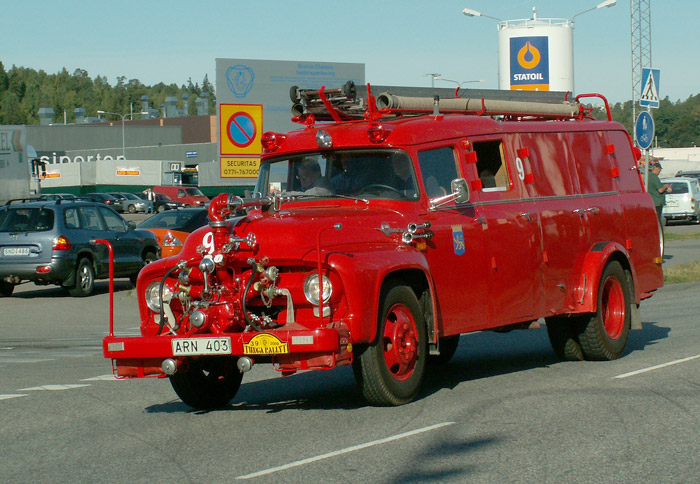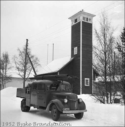 Brandbil okänt märke framför brandstationen i Byske - 1952