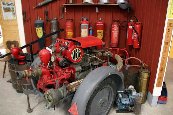Albin Motorspruta modell 800 från mitten av 1940-talet. Tillverkad vid Albin Motor, Kristinehamn. Totalt 3332 såna här tillverkades, varav denna hörde hemma i Borgholm på Öland.