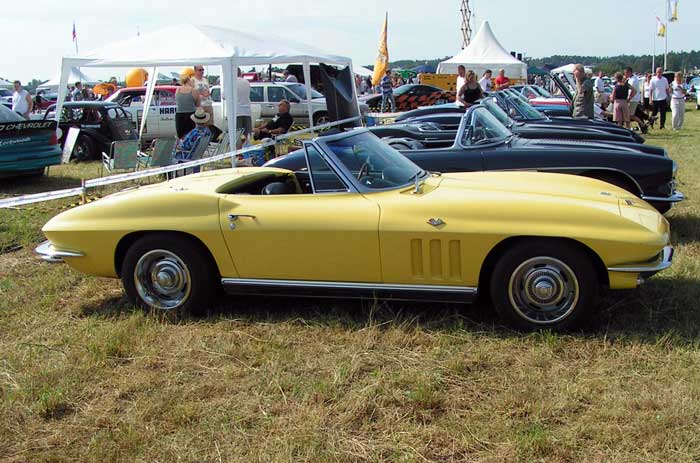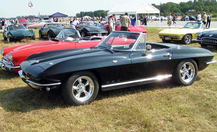 Chevrolet Corvette - 1965 (med LT1 på 425 hk) i bakgrunden och framför en Corvette 1970