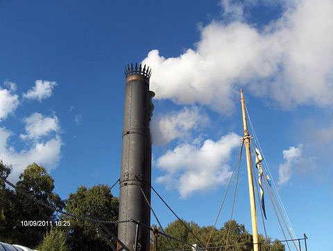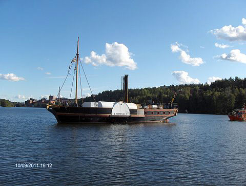 Hjulångarfartyg av fioltyp, d.v.s. med indragna skovelhjul. Byggd i ek på ekspant. Originalet byggdes 1836-1837 på Hammarstens Varv i Norrköping. Originalet sjönk i Vättern 1856 och står kvar på ett djup av 45 m. fortfarande väl bevarad.