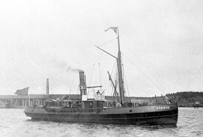 Byggdes för Dykeri & Bergningsångfartygs AB Herkules, Göteborg /J E Waenerlund/ som FÄRDIG, från 1892 redad av Adolf B Elfersson. Övertogs av Göteborgs Bogserings AB den 27 november 1901 men såldes den 5 mars 1904 till Bogserings AB Frej, Rö - från 1914 Måvik. I dag på morgonen har hit anländt bogserång. Färdig, hvilken som förut omtalats från Göteborg inköpts af Bogserbåts AB Frej, som numera har sitt säte i Rö. Färdig är byggd 1871 i Motala och är äfven isbrytare och bergningsångare. (VA 4/5 1904). Såldes den 12 sept 1916 till Finska Ångfartygs AB, Helsingfors men då båten skulle vara verksam i Sverige fick den inte ha utländsk ägare eller föra utländsk flagg, varför den registrerades på välkände trävarumannen Carl Palmgren i Luleå /AB Palmgren & Co/, från 1918 med hemort Haparanda. Såldes 27 januari 1920 från FÅA till Oy Rauma Wood Ltd, Rauma. Namnet ändrades där till RAUMA II och hon registrerades i Rauma med nr 363. Bolagsnamnet kortades 1938 till enbart Rauma Oy och efter en sammanslagning 1942 blev bolagsnamnet Rauma-Raahe Oy. Efter ytterligare en bolagsfusion den 30 nov 1951 ändrades bolagets namn till Rauma-Repola Oy. Hemorten var hela tiden i Raumo. Flyttades 1955 till Rauma Shipyard där hon skrotades.