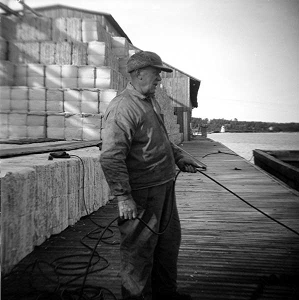 Bilden av Gillis Olsson under pråmlastning på norra sidan av massahuset, visar massakajen i betydligt finare skick - cirka 1950