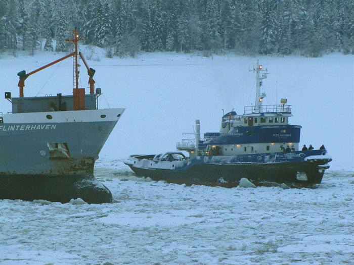 FLINTERHAVEN som skall lasta massa assisteras av ARCTIC EXPLORER och HANS OSKAR