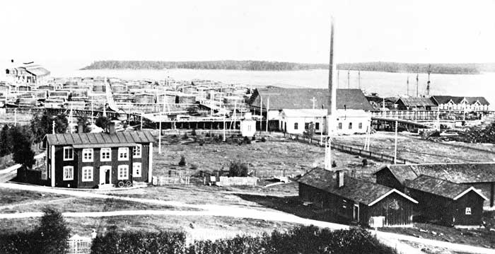Furuögrund, vy över hamnen från sågverksområdet före 1925