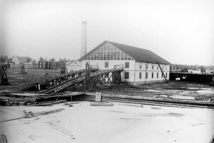 Furuögrund med fr.v. Massahuset, sågen och hamnmagasinet