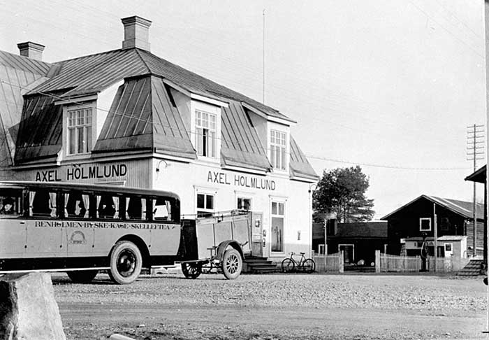 Holmlunds affär och bussen i Byske - 1923
