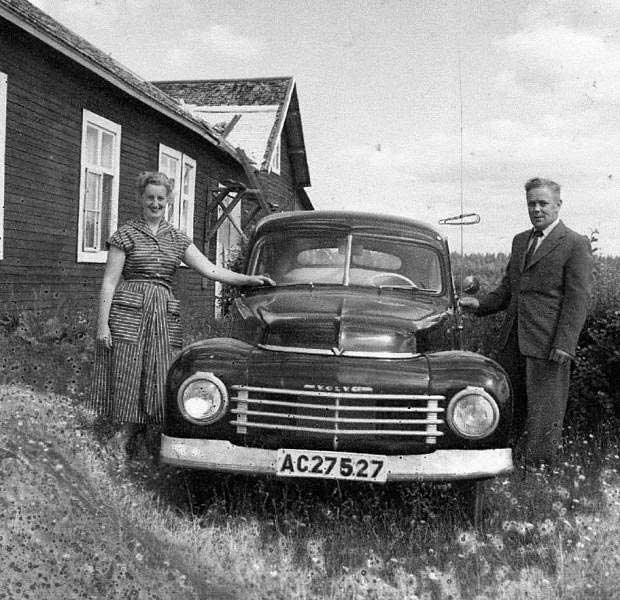 Astrid och Rudolf Asplund med en ny Volvo PV vunnen på lotteri