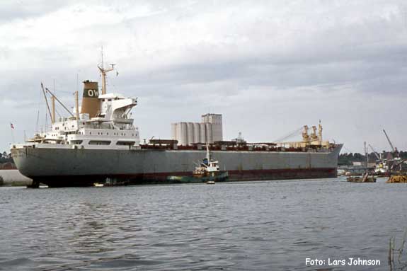 En av Groggbolagets bogserare på styrbordssidan om Walleniusskeppet - Södertälje Uthamn 1975