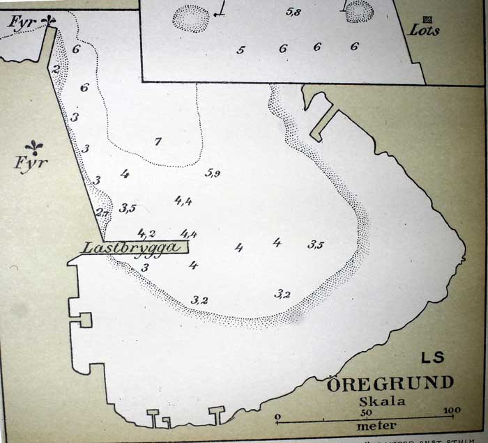 Vid Gräsö gård midt emot Öregrund finnes kolupplag; djupet vid därvarande brygga är 4,1 m.