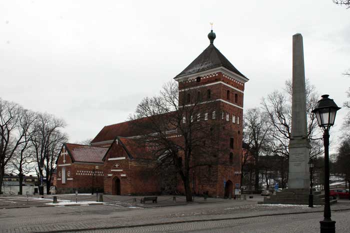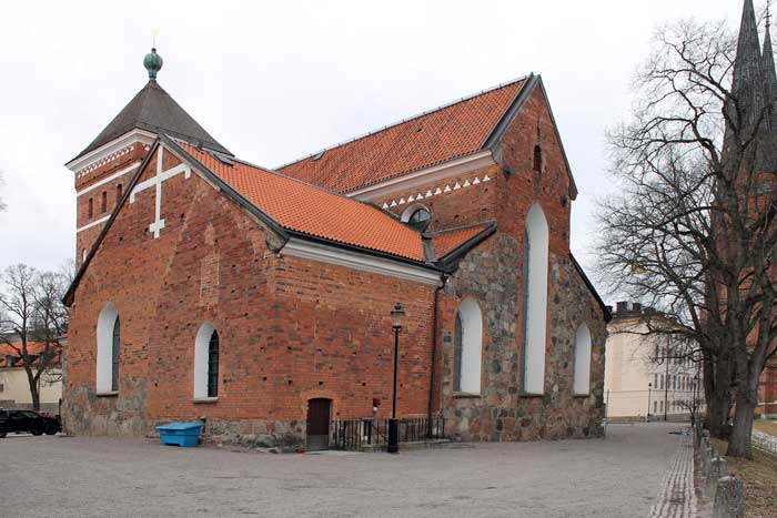 Helga Trefaldighets kyrka med Uppsala domkyrka i bakgrunden