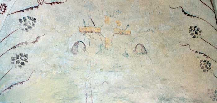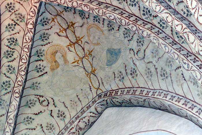 Runsten inmurad i kyrkan. Samt rester av den första sakristian.