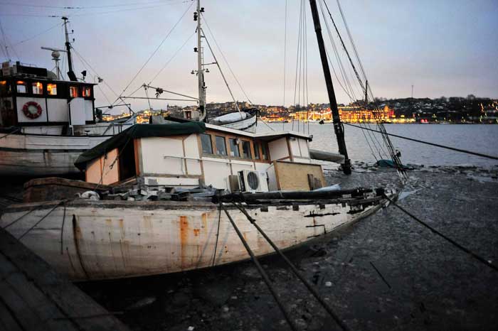 CANNING f.d. trålare som sjönk vid sin kajplats på Norr Mälarstrand vintern 2014