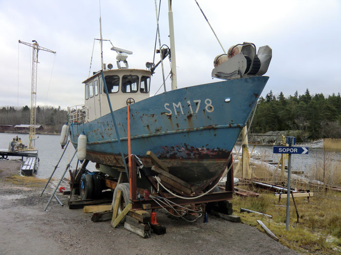 En gammal skötbåt som har landat mycket strömming, sik och lax av fiskarfamiljen Östlund på Långnäsgrundet, Östanbäck.