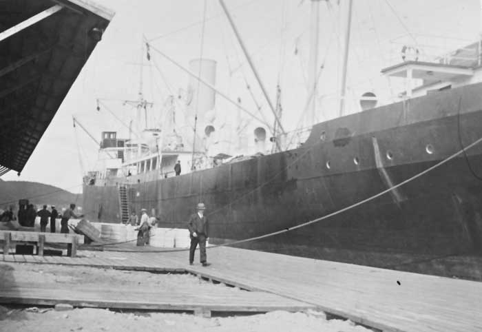 Okänt lastfartyg vid massakajen. Möjligen en Ostasiatare