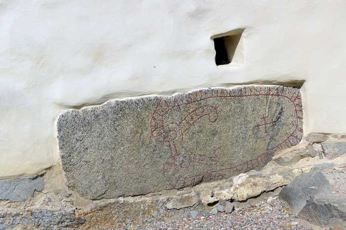 Runsten inmurad i kyrkan