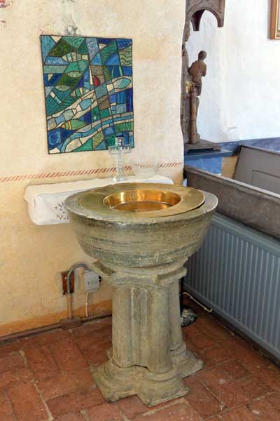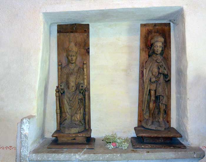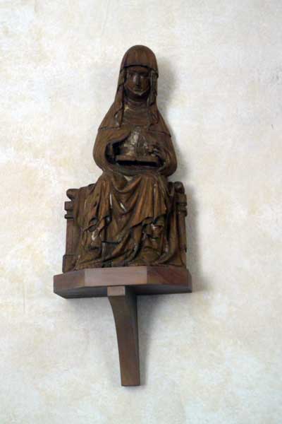 Skulptur av Jungfru Maria med Jesubarnet från 1200-talet. På 1400-talet flyttades barnet från Marias knä till nuvarande plats. Likaså skar man till hennes kläder för att passa till 1400-talets mode. Då skar man även till kronan och försåg den med fem höga kronuddar, varav en finns kvar (den hittades på vinden för blott ett par år sedan)