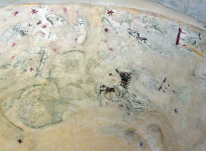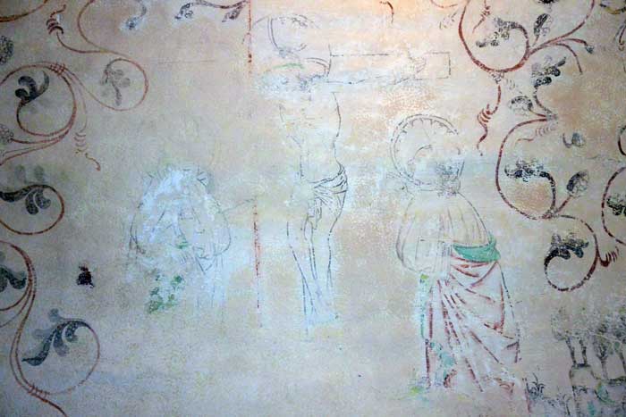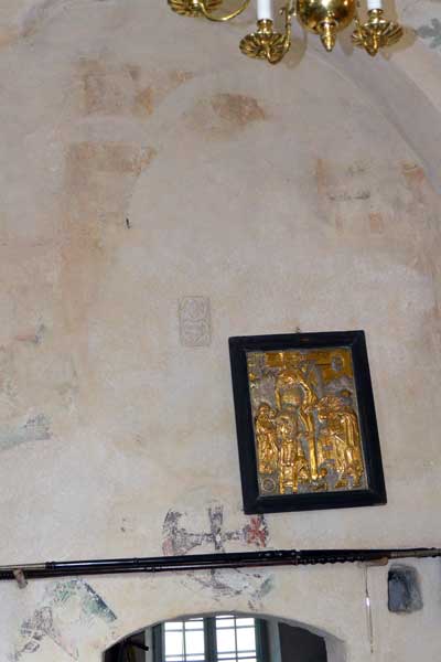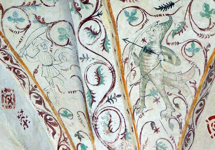 Alldeles vid ingången till vapenhuset finns djävulen avbildad, detta för att dra till sig de onda krafter som annars kan komma med in i kyrkan. (jfr "måla fan på väggen")