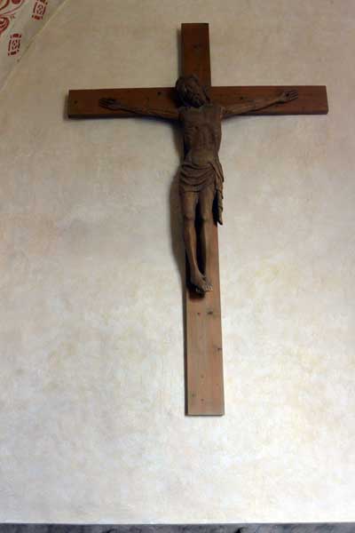 Inne i långhuset möts man av ett stort triumfkrucifix från 1400-talet. Efter digerdöden på 1300-talet kom krucifixen att visa den lidande Kristus.