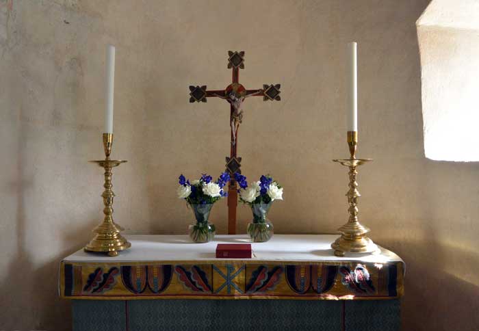 Altaret med den gamla fönstergluggen som var igenmurad 1802-1922.