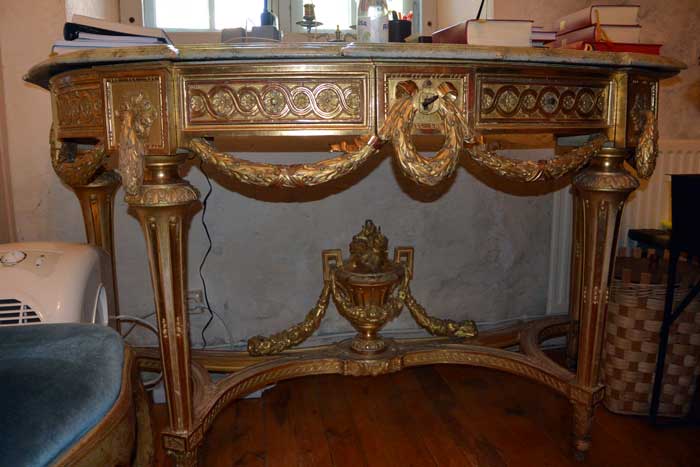 I sakristian finns detta vackra konsolbord som kom till kyrkan 1820