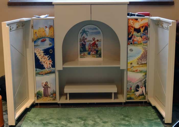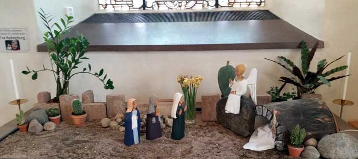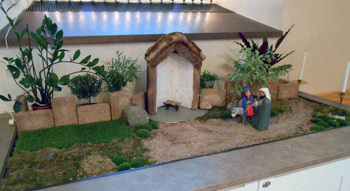 Sankta Ragnhilds julkrubba med figurer snidade av Eva Spångberg