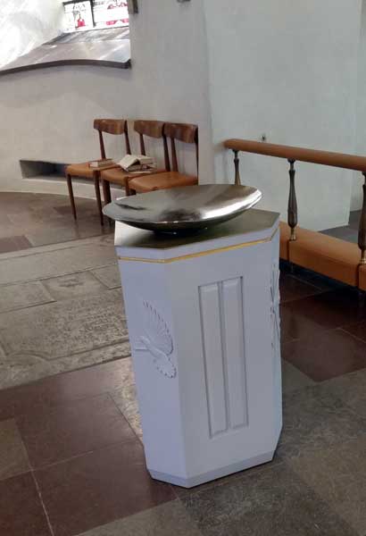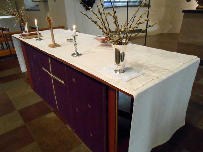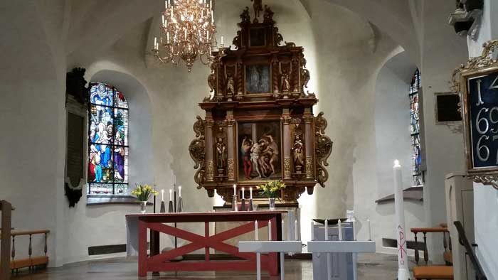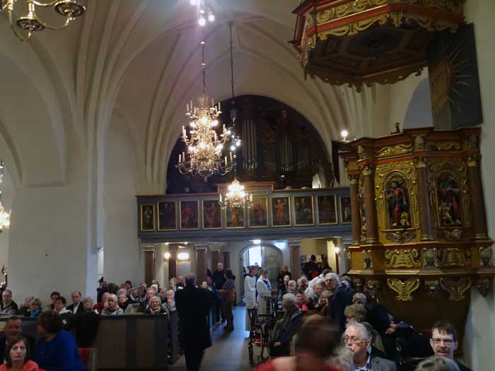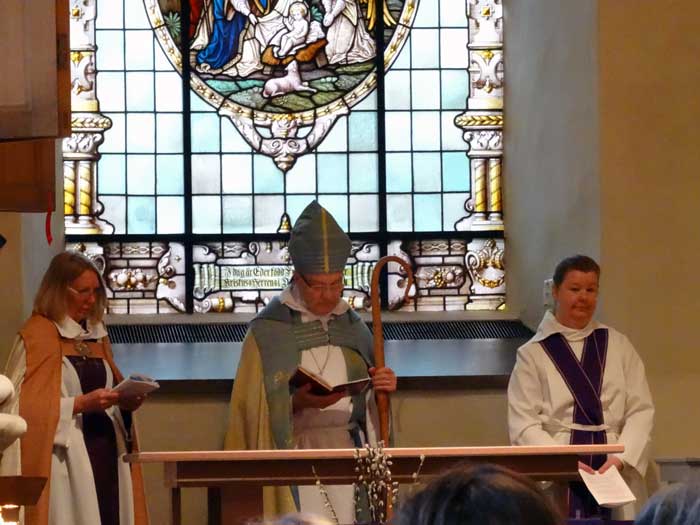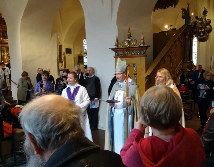 Biskop Hans-Erik Nordin ledde gudstjänsten och invigde kyrkans nya altare, dopfunten och Barnens kapell.