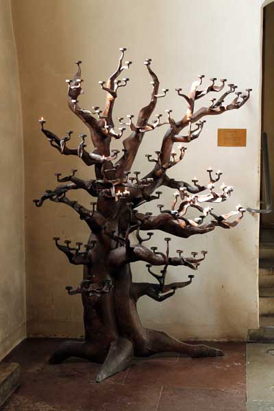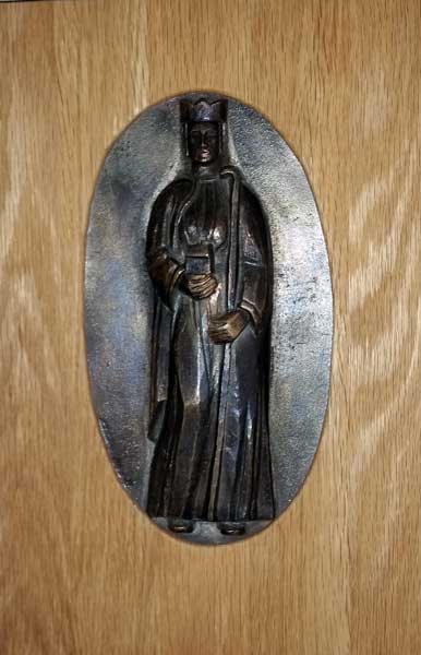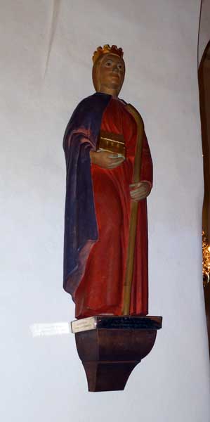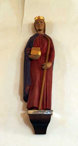 Sancta Ragnhild skulpterad av Erik Sand, Strängnas. Skänkt av Sancta Ragnhilds Gille till kyrkan 1949.