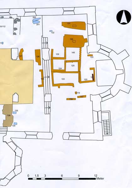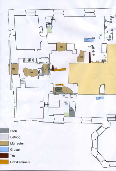 Karta över de utgrävningar som gjordes i samband med 2014 års renovering av kyrkan.
