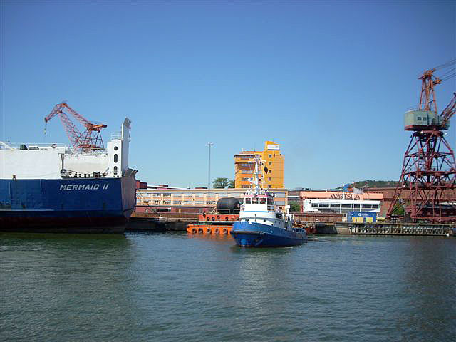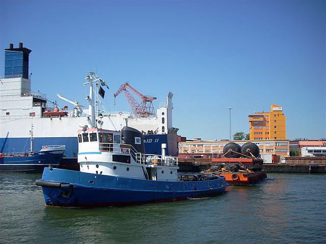 KARL och HERO assisterar en kolbåt in till kajen vid Igelsta