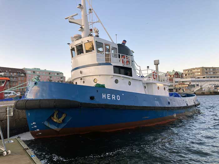 Levererades den 12 april 1965 till AB Bogserkompaniet, Göteborg som HERO. Bolaget fusionerades till Göteborgs Bogserings & Bärgnings AB, Göteborg 1977, till Neptun-Röda Bolaget AB, Göteborg 1978 och till Scandinavian Towage & Salvage AB, Göteborg för 1,5 Mkr 1986 innan hon 1989 såldes till Bogserings AB Sven, Göteborg för 2,4 Mkr. Hemorten ändrades till Oskarshamn 1993 och återgick till Röda Bolaget AB, Göteborg 1998 för 1,925.000 kr. Köptes 1999 av Smålandshamnar AB, Oskarshamn för 1.960.000 kr och fick namnet LARS AF OSKARSHAMN. Såldes 2008 till Sölvesborgs Stuveri och Hamn AB och fick namnet HAFNIA (2). Som HERO hos Sandinge sedan ?