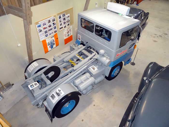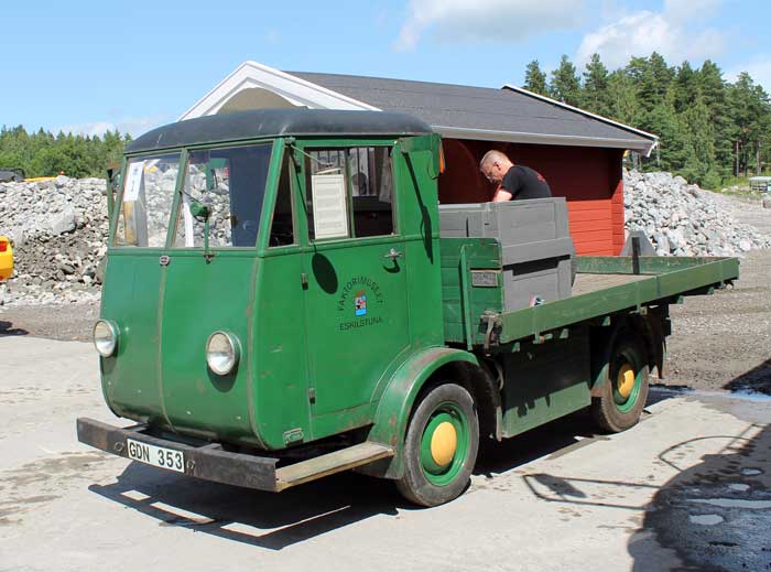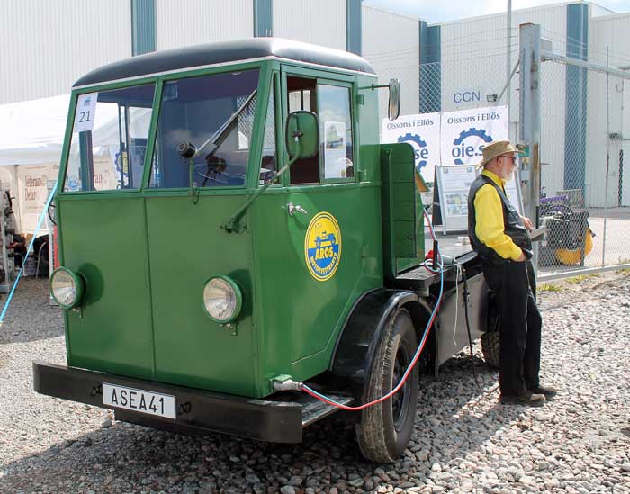 EBV 12/12 chassinummer 22. Original totalvikt var 3 800 kg., men är numera ( för att kunna köras på B-körkort) nedtypad till 3 500 kg. Räckvidden uppgavs original vara 6 mil vid normal körning/last. Utan last har denna bil nu klarat 10 mil på en laddning. Batterier är 2 x 20 seriekopplade 2 volts celler. Toppfart 35 km/h. Detta är det enda bevarade ex. som för närvarande kan köras på landsväg. Ägs av Aros Motorveteraner, Västerås.